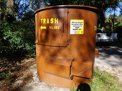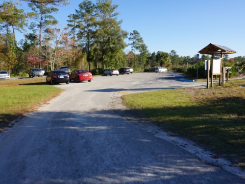 Starting from the parking area at the Springhead, we biked along the paved main park road to the Sand Lake Trailhead (about 2.5 miles). At the Springhead are parking, restrooms, swimming and snorkeling, picnicking, playground, a grill and concession, and paddling launch to the Wekiva River. Bike rentals are available at the concession. Sand Lake Trailhead has parking, picnic tables, and a restroom (follow the paved pathway). Mid-week in December it was quiet on the road, but it can get busy on weekends so keep aware - the road is twisting and there are no bike lanes. Hiking trails cross the road. We often see deer near the campground.