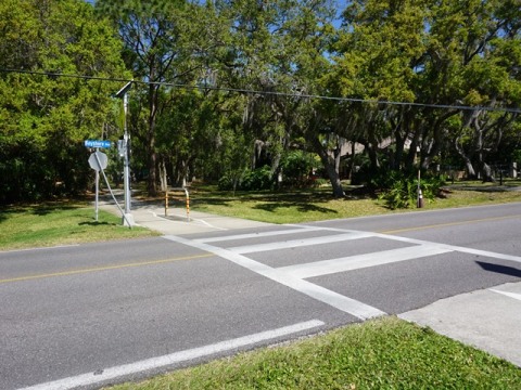 From the Ream Wilson crossing along N. Bayshore Blvd., the short ride south is uneventful. The trail runs roadside but with a wide median and no road crossings or driveways - Cooper Bayou and a wetlands is to the east, and a residential area is across the road to the west. At trail end, to reach the Courtney Campbell Trail involves crossing twice at busy Gulf-to-Bay Blvd. (SR 60): (1) cross N. Bayshore Blvd., (2) cross Gulf-to-Bay Blvd. at the signal.