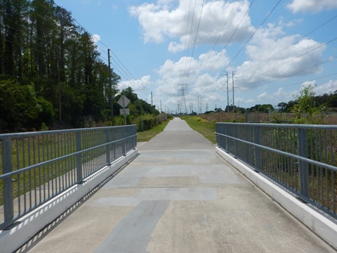 Duke Energy Trail is part of the emerging Pinellas Trail Loop, a planned 75-mile biking loop from St. Petersburg to Tarpon Springs and return. The Duke Energy Trail will form most of the eastern segment of the Loop, eventually running from John Chestnut Sr. Park in Palm Harbor to the North Bay Trail in St. Petersburg. About 13 miles are now complete, with a total of 22.5 miles projected. The trail mostly utilizes Duke Energy right-of-ways and is an easy ride, but virtually no shade and some large road crossings. (Map and photos below.)