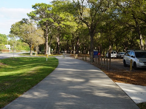 Connecting trails along the way add to biking available: (1) the trail meets Ream Wilson Clearwater Trail, providing a route to Safety Harbor and the Courtney Campbell Trail; (2) it crosses the Druid Road Trail, which provides a route to the Gulf and Clearwater Beach; (3) at the south end, when completed it will meet the North Bay Trail into St. Petersburg. Trailhead parking is not clearly marked, hopefully more signage will be added as the Pinellas Loop is completed.