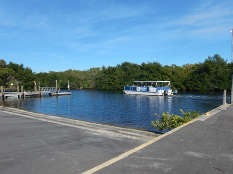 At the Flamingo Marina are parking, restrooms and picnic tables. The Marina Store provides food, drinks, fishing and camping supplies, and the Activities Booth offers boat tours, boat and houseboat rentals, bicycle rentals, and kayak/canoe rentals. There are two launch areas, saltwater on one side, freshwater on the other, separated by the dam over Buttonwood Canal.
