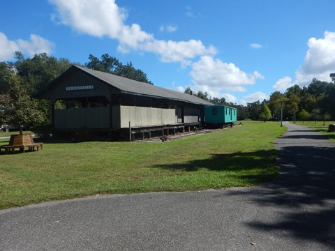 The original start of the trail is at the intersection of Russell and Main Sts. This section runs 2/10 mile west through Russell Street Park to the Brooksville Trailhead. The trailhead has parking, restrooms, picnic tables, a gazebo, and historic exhibits - the 1885 Train Station and the One Room School House. Plans are to relocate other buildings to the site, creating a historic village.