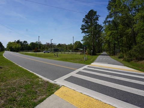 The Palatka to Lake Butler State Trail is a rail-trail on an old Norfolk-Southern Railroad right-of-way. Two disconnected segments of the planned 50+-mile trail are completed, totaling about 36 miles - 32 miles from Palatka to Hampton, and 4 miles at Lake Butler. To the east, the trail ends near Palatka Airport where a gap into Palatka remains. The Palatka to St. Augustine State Trail is currently reachable by road route and the Palatka Urban Trail. The trail crosses and portions are shared with the Florida National Scenic Trail. (Map link and photos below.)