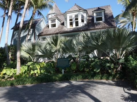 The trail continues past the Biltmore and condominiums to Atlantic Ave. where private homes and docks resume trailside. Here you'll pass Old Bethesda-by-the-Sea Church (1894), now a private home, and the Duck Nest (1891), the oldest standing house in Palm Beach. At Country Club Rd., the trail runs next to N. Lake Way for 1/4 mile, passing the Palm Beach Country Club.