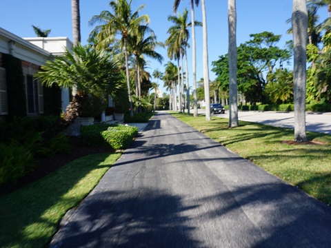Glimpse the lifestyles of the rich and famous while biking along Palm Beach's Lake Trail. The popular trail is on the west side of Palm Beach, along the Lake Worth Lagoon (part of the Intracoastal Waterway). Used by bikers, runners and walkers, the scenic trail is landscaped with many trees and flowering shrubs. Views along the Lagoon include yachts and the West Palm Beach skyline. Along the way, you'll be passing the backyards of mansions and several historic sites including the Henry Flagler Mansion and Museum and the oldest standing home in Palm Beach. (Map link and photos below.)
