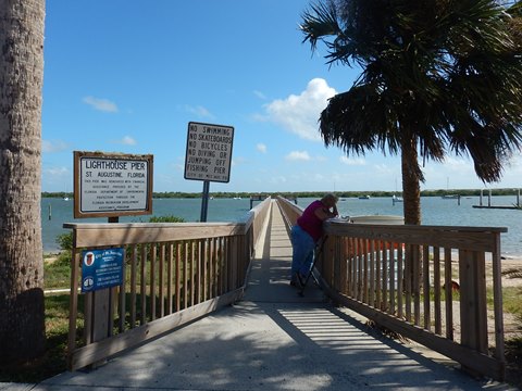 Ride across the Bridge of Lions and follow A1A onto Anastasia Island to Anastasia State Park - the bridge is marked by sharrows, or bicycles are allowed on the sidewalk (yield to pedestrians). At the park are over 4 miles of beach - we had not realized what a surprisingly pleasant ride the beach at the park is (at low tide!) - and park roads are available for biking. This section is part of both the St. Johns River-to-Sea Loop and East Coast Greenway.